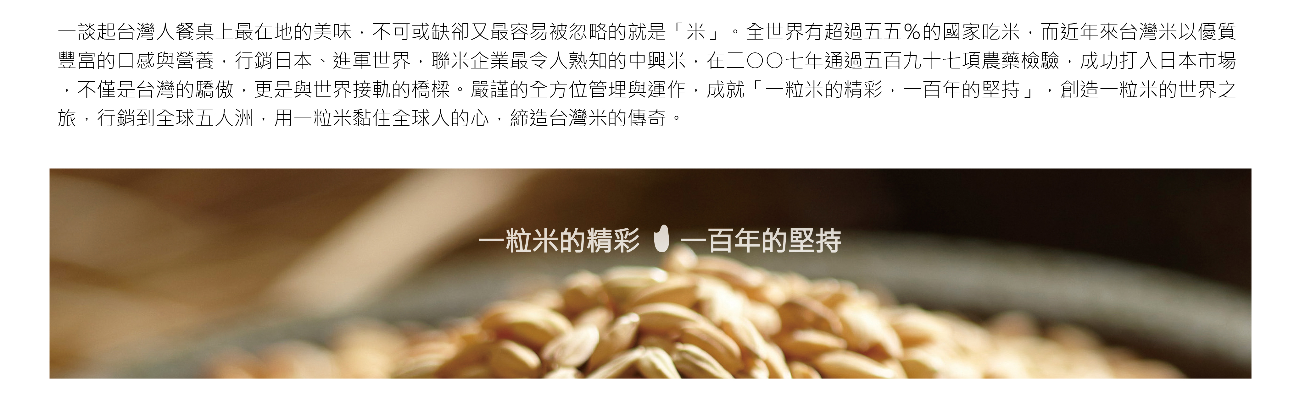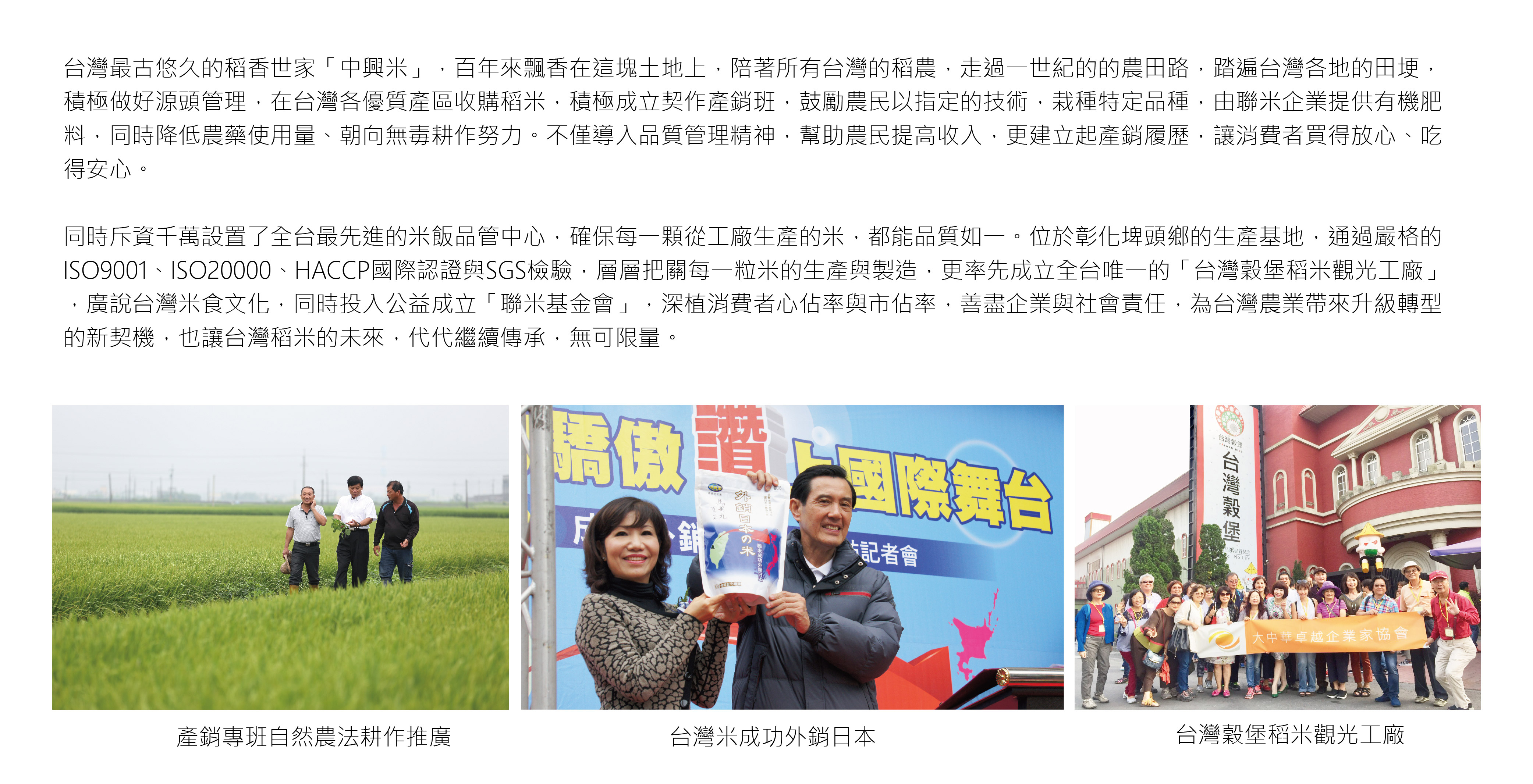 創新全球米食文化,永續在地農業經營,滿足 人類健康幸福需求。