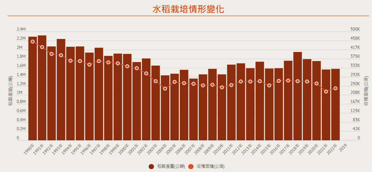 公糧保價收購已出現半個世紀,是台灣影響最深遠的農業政策,政策出現是為保障糧食安全,也讓水稻產業穩定發展,成為所有作物中,分工、機械化最完整的產業。公糧目前約佔水稻總產量兩成,農業部每年得花上百億元保價收購,近年食米量下跌、公糧爆倉,也引發外界檢討之聲。